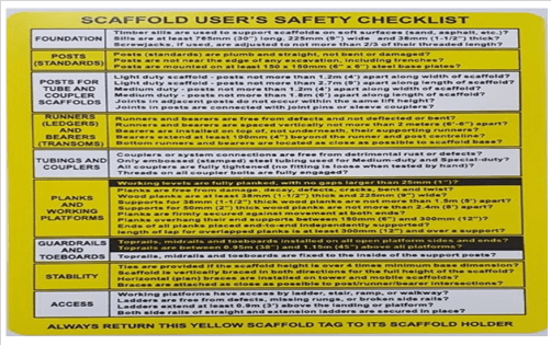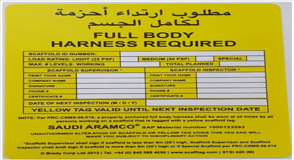 WRITE-ON TYPE,YELLOW “USE OF FULL BODY HARNESS”,WHITE,PLASTIC,MARK II INSERT ATTACHME,BS EN ISO 9002: 1994,SCAFFOLD TAG INSERTS