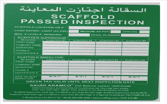 WRITE-ON TYPE,GREEN “” PASSED INSPECTION””,WHITE,PLASTIC,MARK II INSERT ATTACHME,BS EN ISO 9002: 1994,SCAFFOLD TAG INSERTS